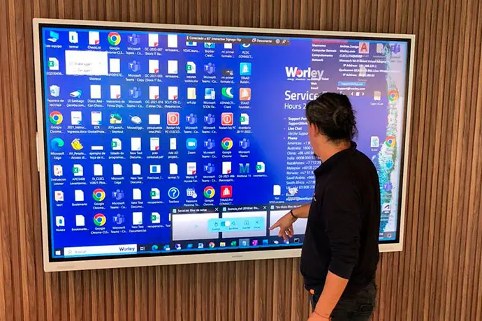 Worley necesitaba más que equipamiento audiovisual básico. Requerían una infraestructura tecnológica que facilitara reuniones productivas con clientes y equipos globales, optimizara la visualización de información técnica compleja en todas las áreas de trabajo, transformara las sesiones de trabajo en experiencias dinámicas y colaborativas, y proporcionara herramientas que aumentaran la eficiencia operativa en proyectos de ingeniería.